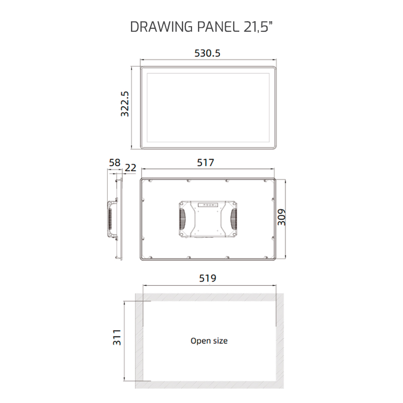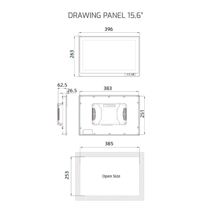 | 15,6” [PM 15.6″ CI] | 1920×1080 (16:9) | 3000:1 / 250cd/m2 | 0 ~ 50 °C |