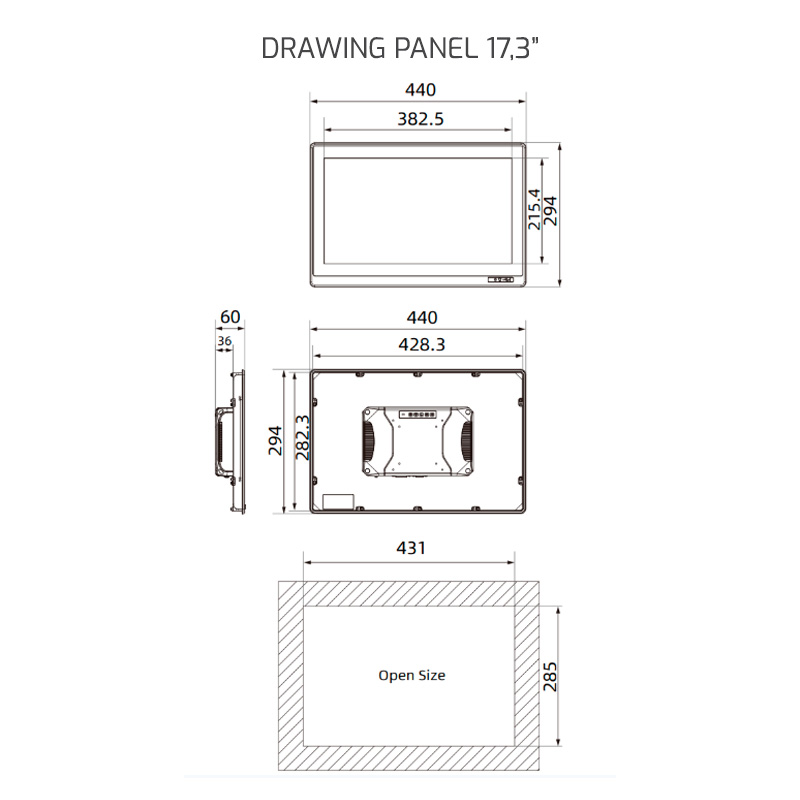 | 17,3” [PM 17.3″ CI] | 1920×1080 (16:9) | 600:1 / 400cd/m2 | 0 ~ 70 °C |
