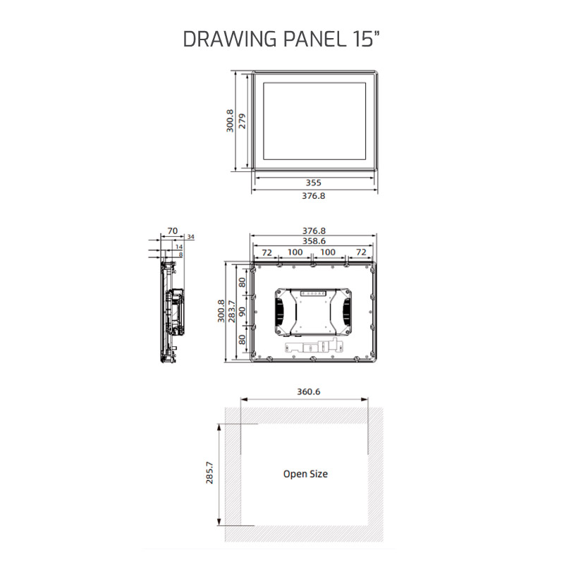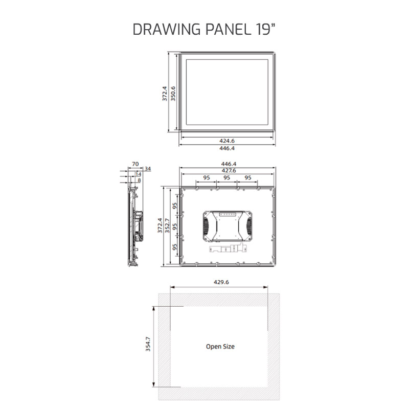 Resolução nativa: 1024×768 Contraste: 800:1 / Brilho: 420cd/m2 Temp. funcionamento: 0 ~ 60 °C |