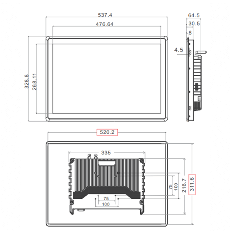 Painel PC industrial de 21,5 polegadas de gama profissional. Processador de 10ª geração i7 10510u. Inclui segurança TPM (Trusted Plataform Module). Frontal com IP65 à prova de poeira e água com tela capacitiva. Moldura frontal de liga de alumínio, durável e com design especialmente preparado para dissipar o calor. Suporta voltagem de 12v e 24v.